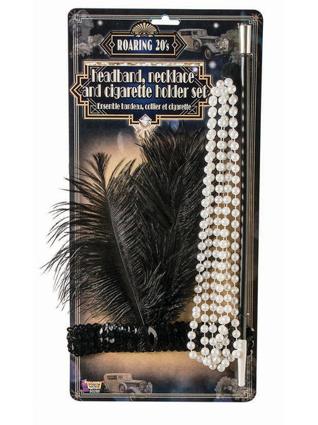 If you're dressing up as a flapper girl from the Roaring 20's this year, then don't forget to pick up our Flapper Kit for all your gear and accessories. With this nifty kit, you will receive all of the classy items you need to really set your flapper get-up apart from the rest. Featuring a dazzling black sequins headband with an attached black feather, a faux white pearl necklace, and a black cigarette holder, you are going to love dressing up with these fun items this year.