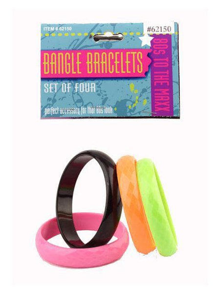 You'll be all ready for the 80's party this year when you get all dressed up with our Bangle Bracelet 80's Set. With this set, you will receive just the bracelets you need to really add a little life and color to your 80's look. Featuring a set of neon green, neon orange, neon pink, and black bangle bracelets that will pair great with the rest of your 80's attire, you won't want to miss out on these stylish accessories this year.
