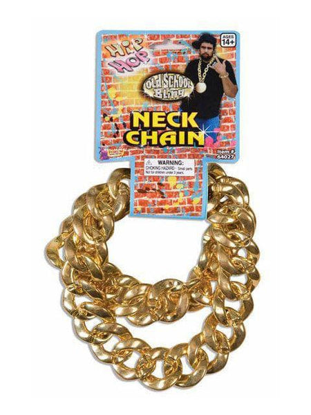This Halloween will be off the chain with this Adult Gold Large Link Chain Necklace. Add some bling to your old-school look with this larger-than-life accessory, the perfect finishing touch for any retro rapper costume and beyond! Whether you're busting a move at a costume party or a night out on the town, this jumbo faux gold necklace is sure to make your outfit pop. Complete with a lobster clasp closure, this bold chain will stay on no matter how wild your night gets. So get your best beats ready and finish off your look with this oversized chain for an edgy, show-stopping look no one will soon forget.
