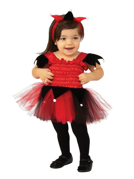 Your little one will be entertaining the entire King and Queen's court this year when you dress them up in our Court Jester Baby/Toddler Costume. With this set, you will receive everything you need to turn your tyke into an adorable jester who has a knack for spreading joy, laughter, and love to everyone she sees. Featuring a beautiful red and black tutu dress, a diaper cover, and a matching jester hat headband, she's going to look too cute in this one.
