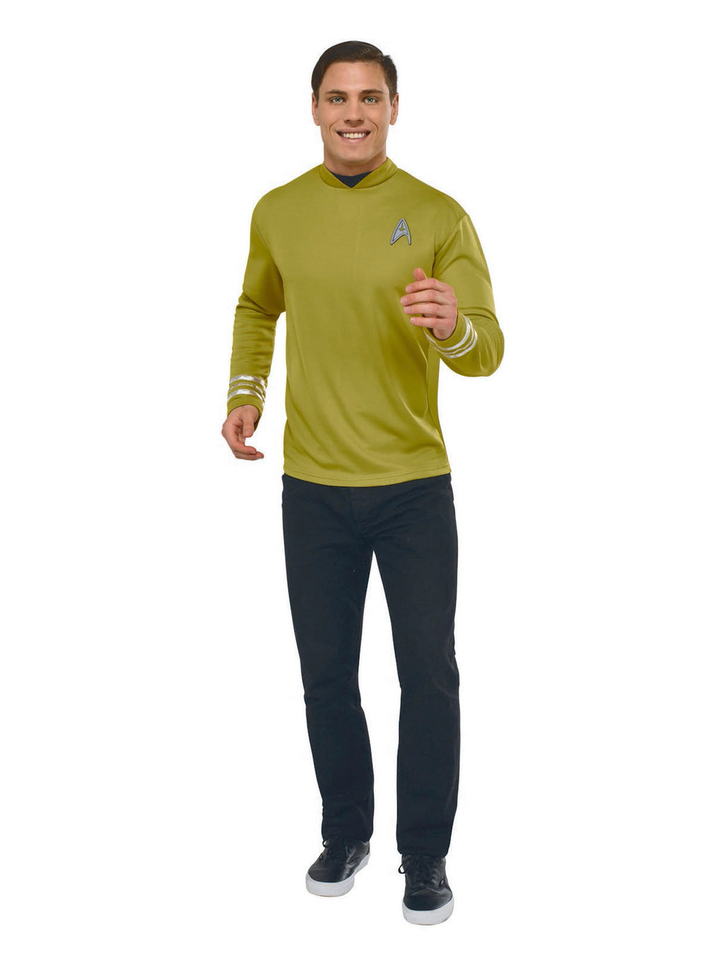Boldly go where no man has gone before with this Men's Star Trek Beyond Captain Kirk Costume Top, the ultimate easy-to-wear outfit for any Trekkie! Whether you're headed to a convention, Halloween party, or just want to command the room, this officially licensed top brings Captain Kirk's iconic look straight from the USS Enterprise to your closet. Just slip this top on paired with black pants and you're ready to explore strange new worlds, no complicated gear required. Engage your inner Starfleet captain and make it so!