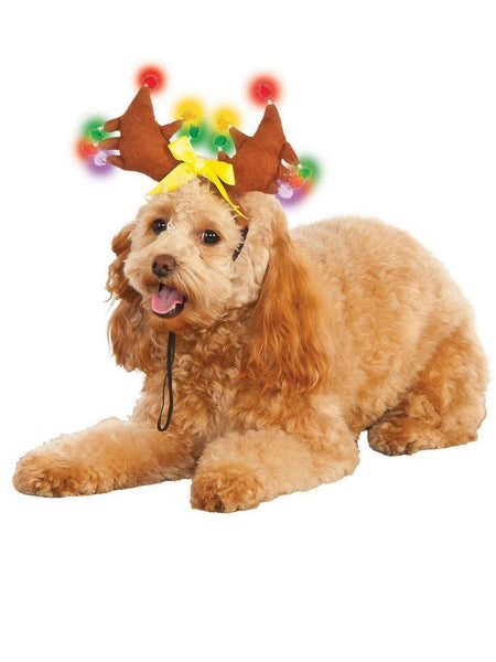 Get your pup in on the North Pole reindeer action this year when you get them all dressed up with our Pet Light Up Reindeer Antlers. With this set, you will receive just the pair of antlers your dog needs to deliver gifts with Santa across the globe. Whether you refer to your reindog as Rudolph, Comet, or Prancer is up to you, but one thing is for certain, they'll certainly be looking cute and angelic with this light up set of antlers.