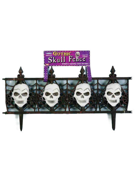Your front yard will be looking ominous as ever this year when you decorate with our Gothic Fence w/ Skulls. Perfect for the walkway or for lining the sidewalk, this spooky fence is sure to let the world know that spooky things are afoot at this house. Featuring a black ornamental spider web design with white grimacing skulls centered along each post, you definitely don't want to miss out on this extra creepy fence this year.