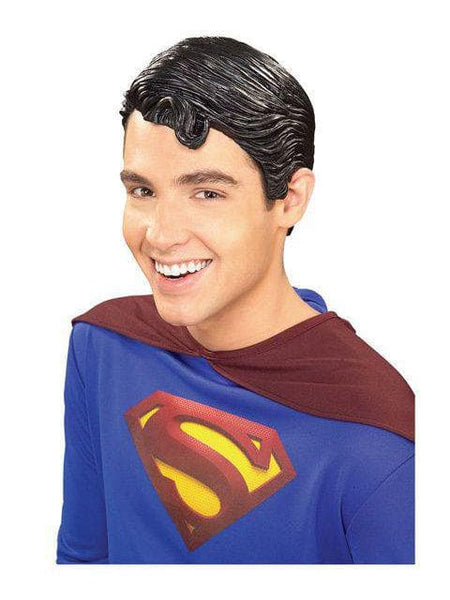 Make your Superman costume complete this Halloween with this wig. The Superman Vinyl Wig for Adults is a a faux vinyl black wig that is stylized to look exactly like this classic comic book character's signature hair. You have the costume now all you need is the hair.