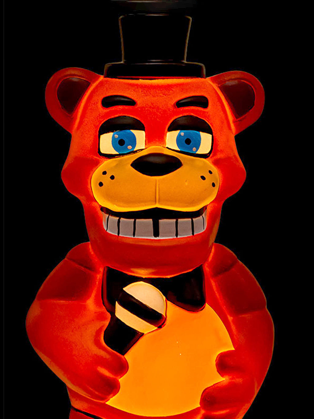Bring the fright night fun to life with this 12-inch Five Nights at Freddy's Freddy Fazbear Light-Up Blow Mold Decoration! Perfect for fans of the chilling game franchise, this compact yet eye-catching decoration features the infamous Freddy Fazbear in classic blow mold style holding his infamous microphone—complete with glowing details that light up the night. Whether you're decorating for Halloween, a themed party, or just showing off your love for FNAF, Freddy’s eerie glow is sure to stand out. Powered by 3 AAA batteries (included!), it’s easy to set up and display anywhere you want a touch of animatronic terror. A must-have collectible for any true Freddy fan!