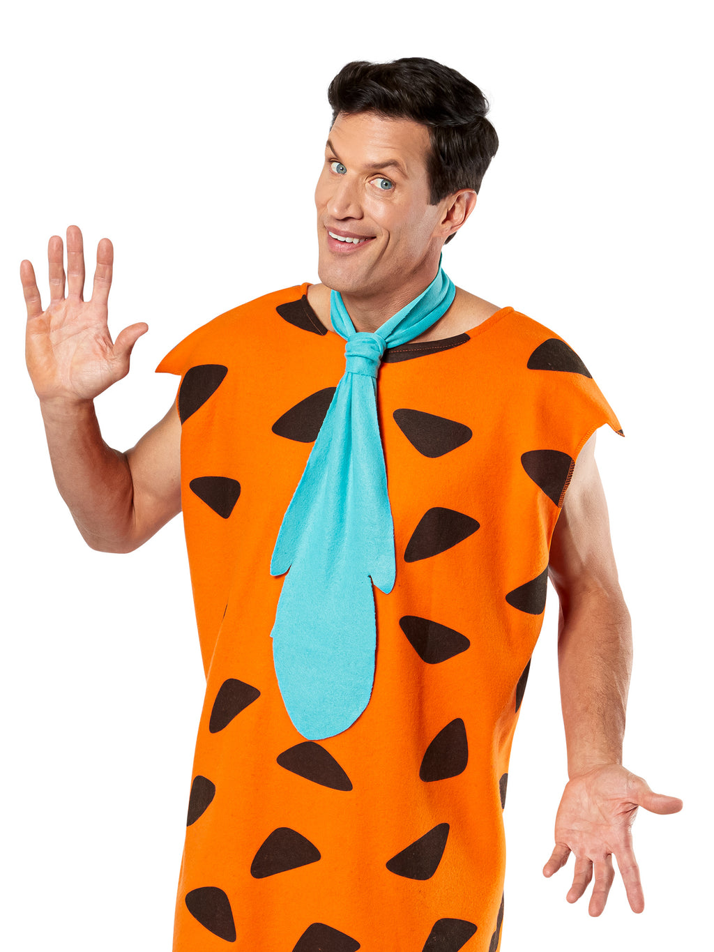 Head to the party wearing the Men's The Flintstones Classic Fred Flintstone Costume and you'll be telling everyone your next get rich quick scheme. With this set, you will receive everything you need to make your home in the town of Bedrock with Wilma, Pebbles, and the rest of the gang. Featuring a fun orange and black sleeveless tunic with a jagged edge bottom, as well as a blue necktie, you are going to have a blast with this prehistoric look this year. Order now and get more Flintstone characters to make a fun group costume.