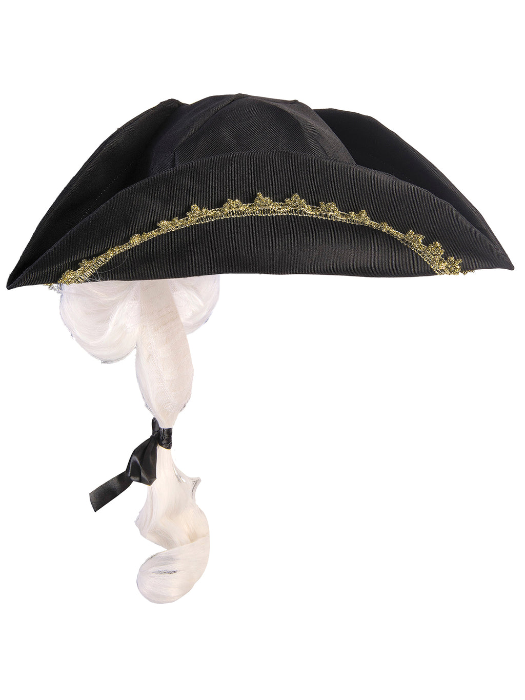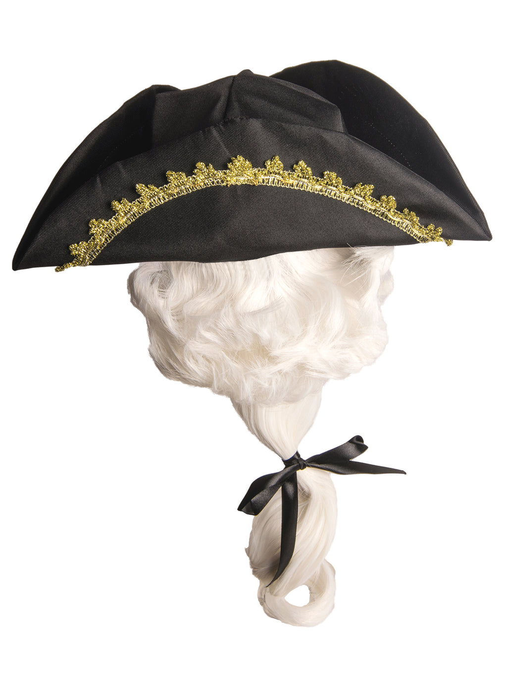 Kids' Black Colonial Tricorn Hat with Wig