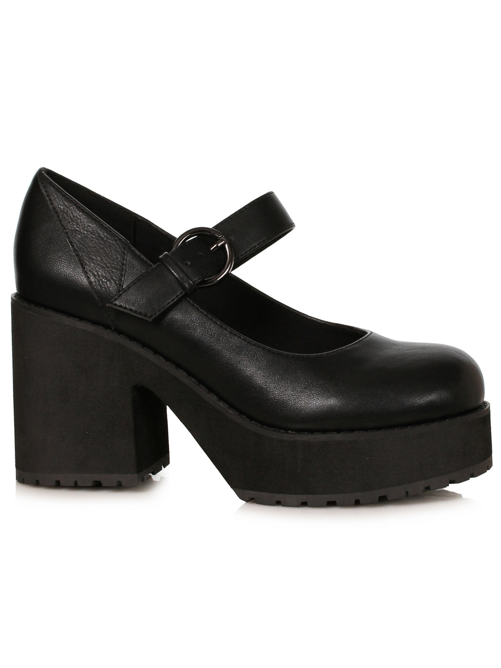 Looking for the perfect shoe to elevate your look? Look no further than these Women's Black Mary Jane Platform Shoes! With a 3.5 inch heel and platform, these chunky shoes will add some edge to any outfit. Perfect for goth fashion or completing a costume, these shoes will be a staple year after year. Step up your style with these platform shoes that add a touch of attitude to any outfit. Whether you're channeling your inner goth or rocking a costume, these shoes are sure to elevate your look (literally and figuratively). You'll be feeling like you're on top of the world (or at least a few inches off the ground).
