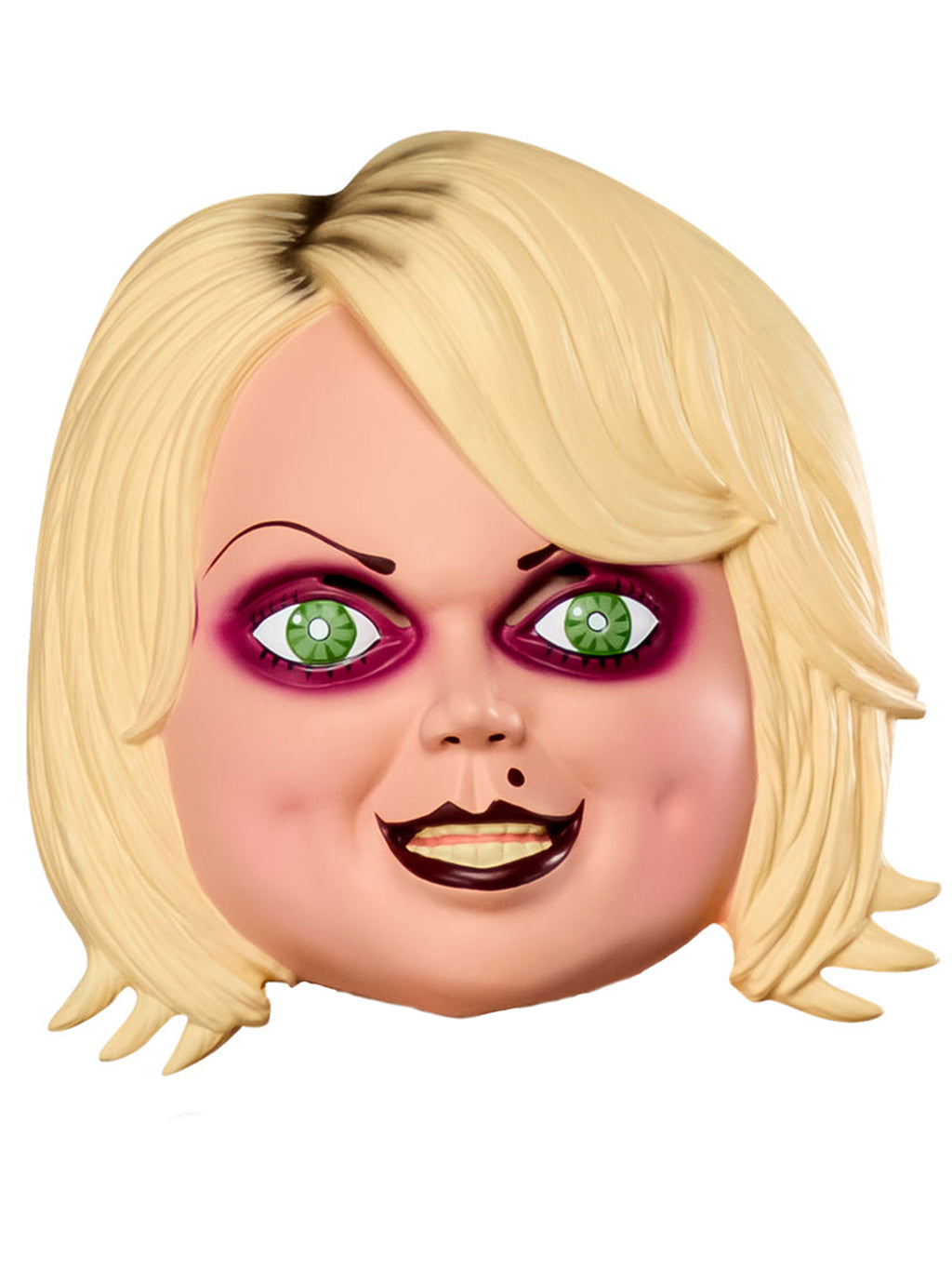 With this item, you will receive just the mask you need to become one of the most wicked dolls to ever exist. Featuring a vacuform 1/2 mask in the style of Tiffany Valentine's face with blonde hair and black eye shadow and makeup, this mask is sure to complete the rest of your sinister dollish look. Perfect for causing chaos and wreaking havoc at whatever party or event you find yourself at, you're going to love this one. Pick up yours today, and then team up with Chucky for an evil costume duo nobody will be prepared to see!