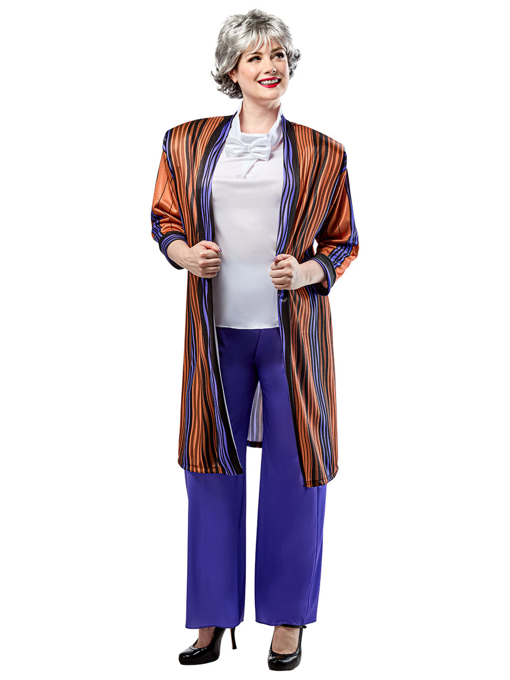 Step into the world of classic TV charm with the officially licensed Women's The Golden Girls Dorothy Costume with Wig. This costume brings the iconic Golden Girls character to life with style, grace, and a whole lot of fun. Featuring Dorothy's signature look with a white top, purple slacks, orange and purple jacket, and gray wig, instantly allowing you to bring the Golden Girls charm to life. Whether you're attending a Golden Girls trivia night, celebrating a milestone birthday, or showing off your retro TV style—this costume is a must-have for any fan of the show. Shop now and get ready to live out your favorite Gold Girls moments in style.